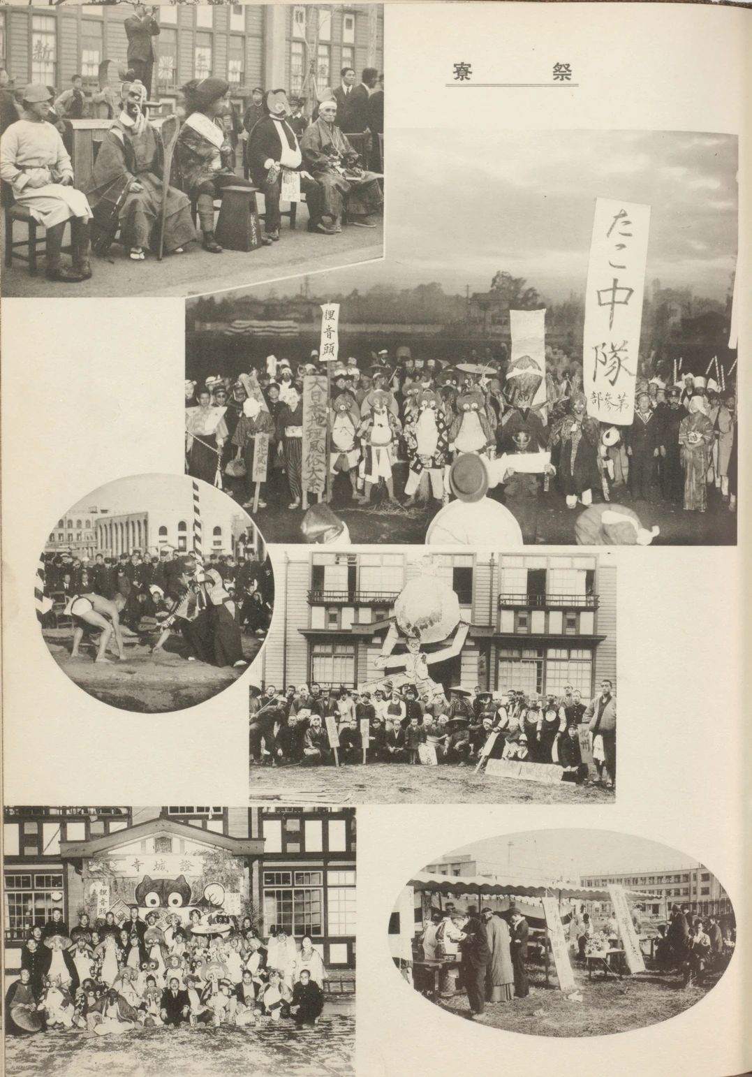 しかし寮生活では共同生活による規律訓練的な要素だけでなく、様々な行事を通じて交流を図る機会も設けられていました。二枚目の写真は「対寮マッチ」(「寮祭」)の際の仮装行列の様子です。この日ばかりは羽目を外しての無礼講であったということです(『創立六十年 青山師範学校沿革史』p.582)。