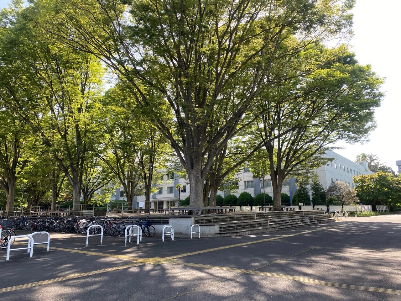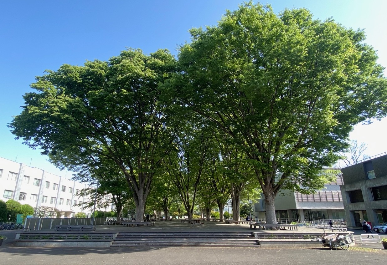 東京学芸大学小金井キャンパスは、1950年代後半から1960年代にかけての時期に、建物の建て替えや環境整備が行われ、現在のキャンパスの原型が形作られました。現在ケヤキ広場となっている場所は、元はオープンスペースでしたが、1964年にケヤキが植樹され、広場が造成されました。2014年、天然木のウッドデッキが施工され、学生や教職員による彫刻作品などの展示も行われています。