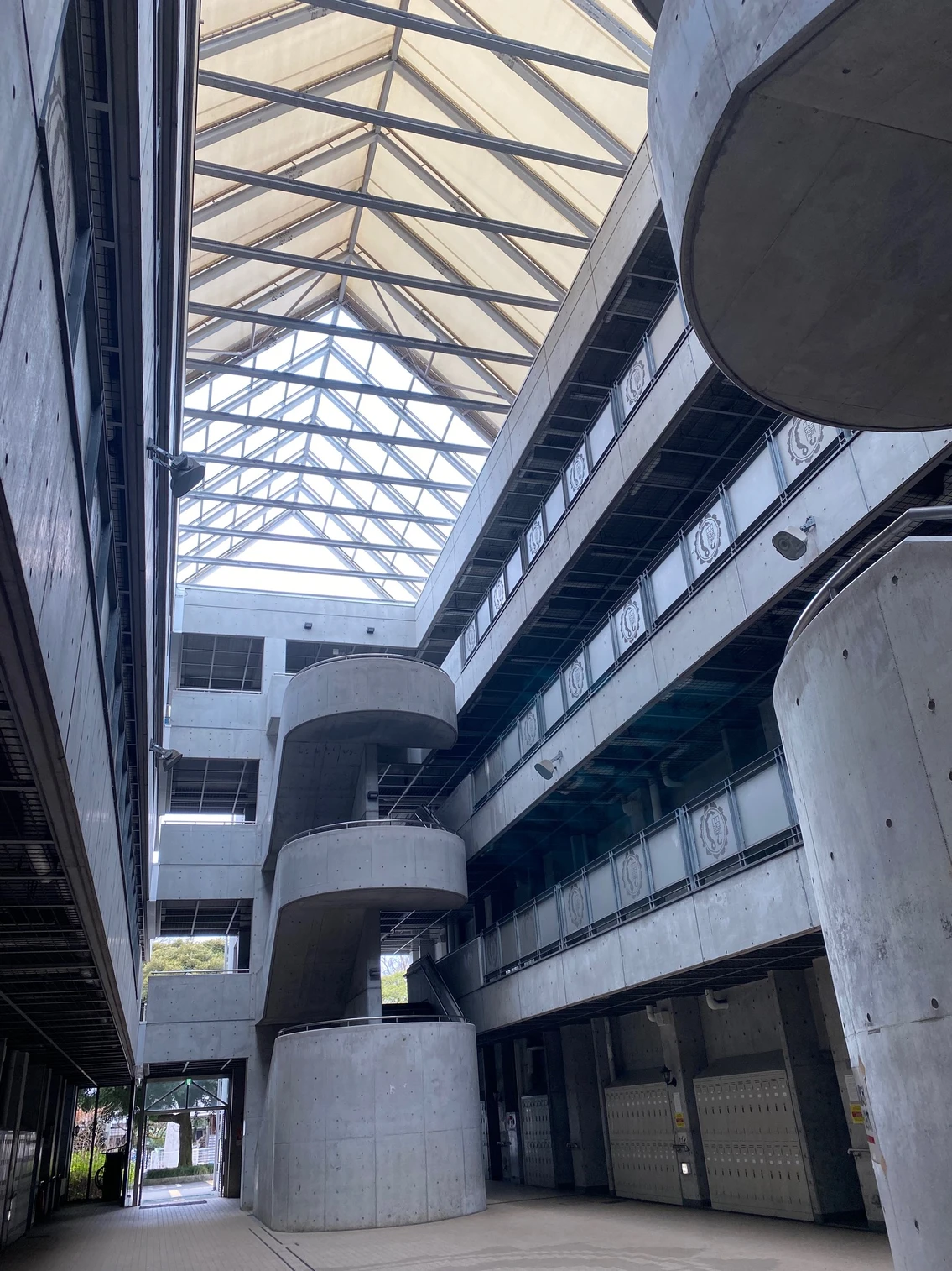 こちらの写真は現在の講義棟(中央2号館、旧・S棟)の様子です。現在の講義棟は、1996年に建設されたものです。それまでは、1960年代の小金井キャンパス造成の際に建設された一般講義棟(一号館から四号館)がありました。