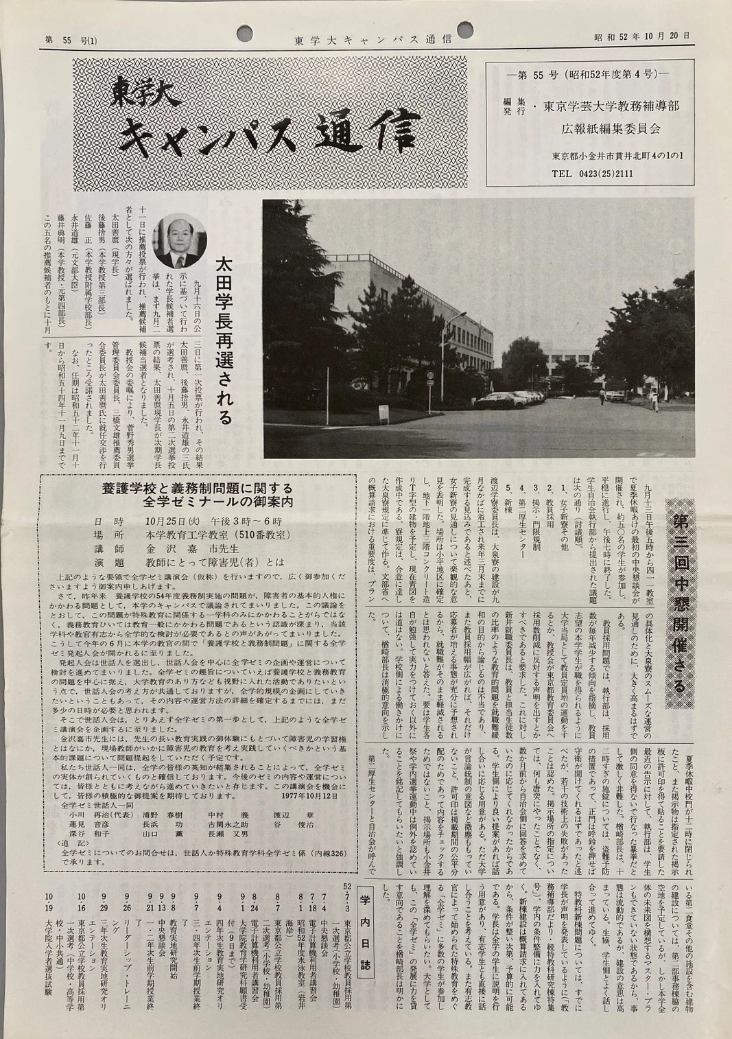 『東学大キャンパス通信』第55号(東京学芸大学教務補導部 広報誌編集委員会、1977年10月20日)